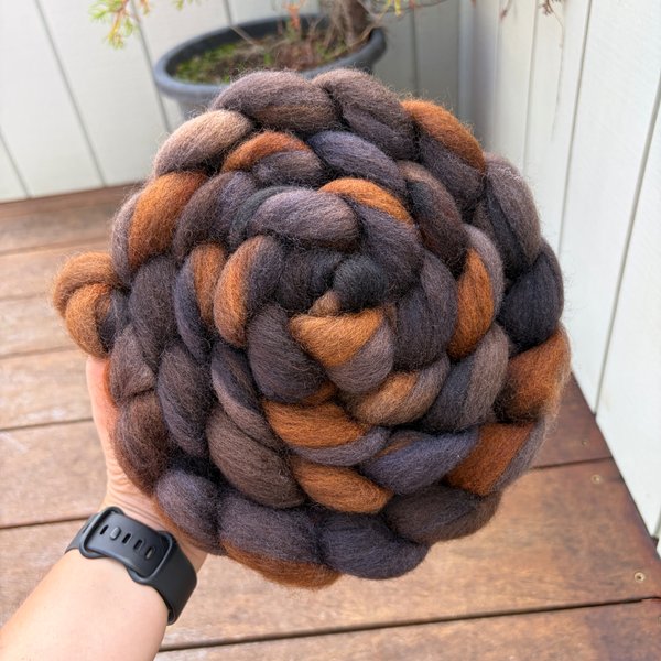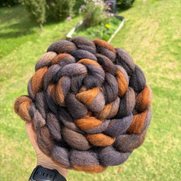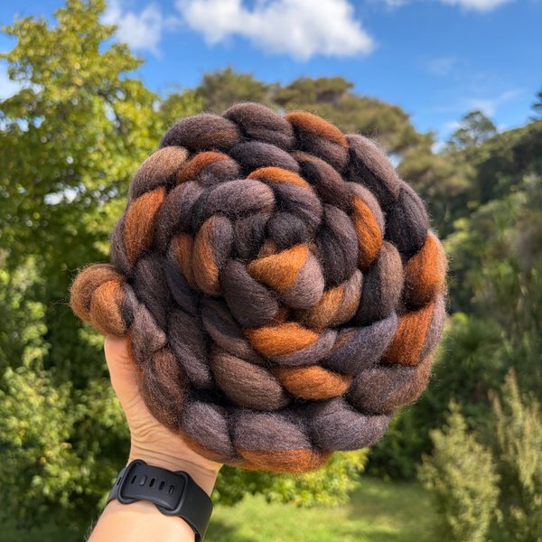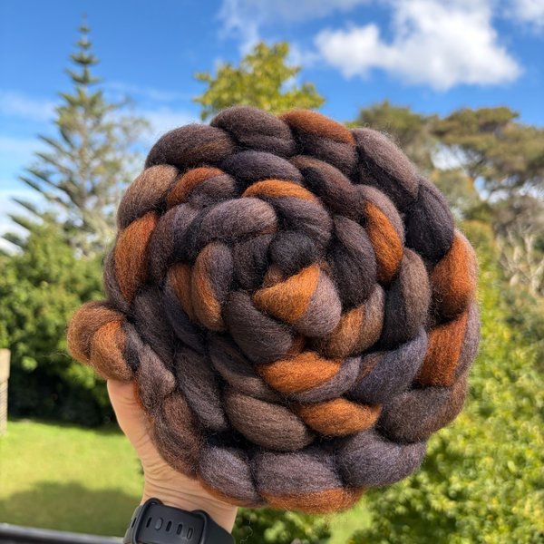 100% NZ Haunui wool 26 micron. Dyed over natural brown base.