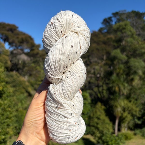 75% SW merino (19.5 microns) 15% nylon 10% Nep yarn