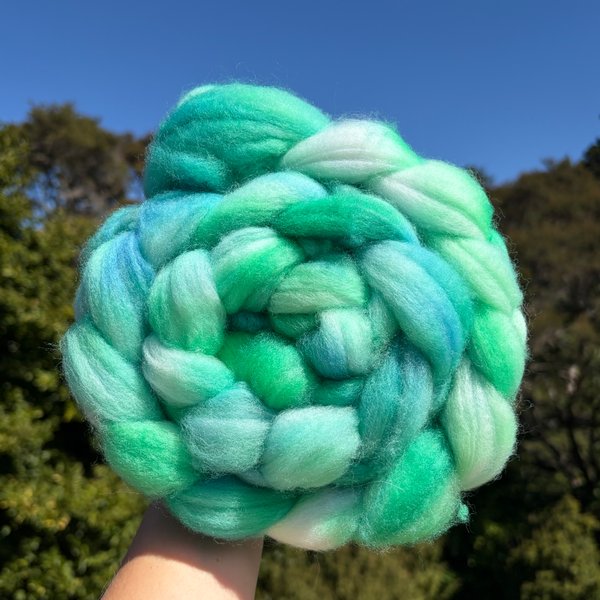 80% Fully mashine washable 26 micron corriedale wool and 20% nylon blend for durability.