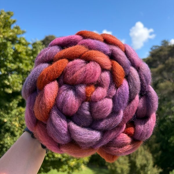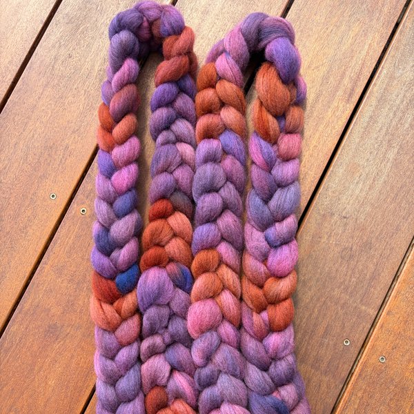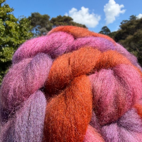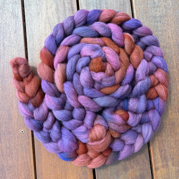 100% NZ Haunui wool 26 micron. Dyed over natural "toffee" base.