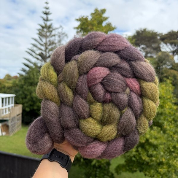 100% NZ Haunui wool 26 micron. Dyed over natural "toffee" base.